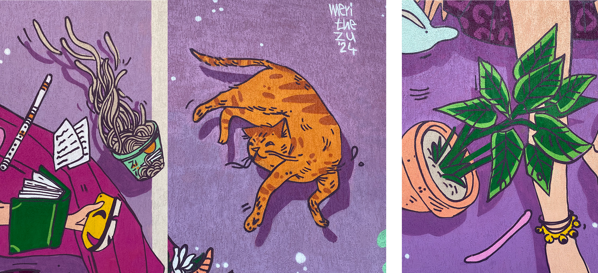 close your eyes, forget the rule, let it flow — imperfect, cruel. things will move, be torn, be true, even chaos knows what to do. hear your cat hum jazz at night, purring spells to keep you bright, lute and rhythm, strange embrace, holding time, suspending space. drink the coffee, cold or late, nothing here is sealed by fate, life’s a mess, a passing tide, everything will drift aside. it’s an act, a role undone, floating scenes beneath the sun, mad and vivid, loose and free, painted moments meant to be. breathe in deep, don’t chase the proof, love begins when you’re uncouth, the stage is yours, the lights agree — step inside. begin. just be.